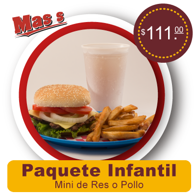 ¡Les va a encantar! Nos aseguraremos de sorprender a los pequeños con este mini formato. Hamburguesa de pollo o res, ellos eligen. Además de unas papas a la francesa que les encantarán. Consientelos con su bebida favorita. Nada mejor que verlos contentos.