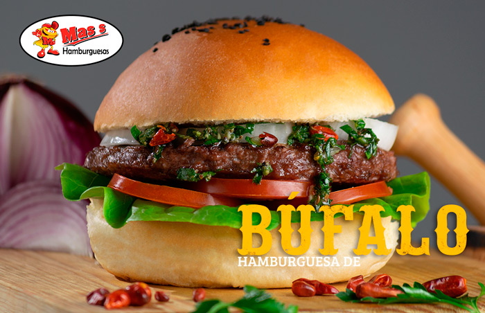 Deliciosa Hamburguesa de Carne de Bรบfalo, con un adhereso que no tiene desprecio: especiado chimichurri con un toque mexicano de chile piquรญn, con el que lograrรกs deleitar tus mรกs exigentes gustos gastronรณmicos.
